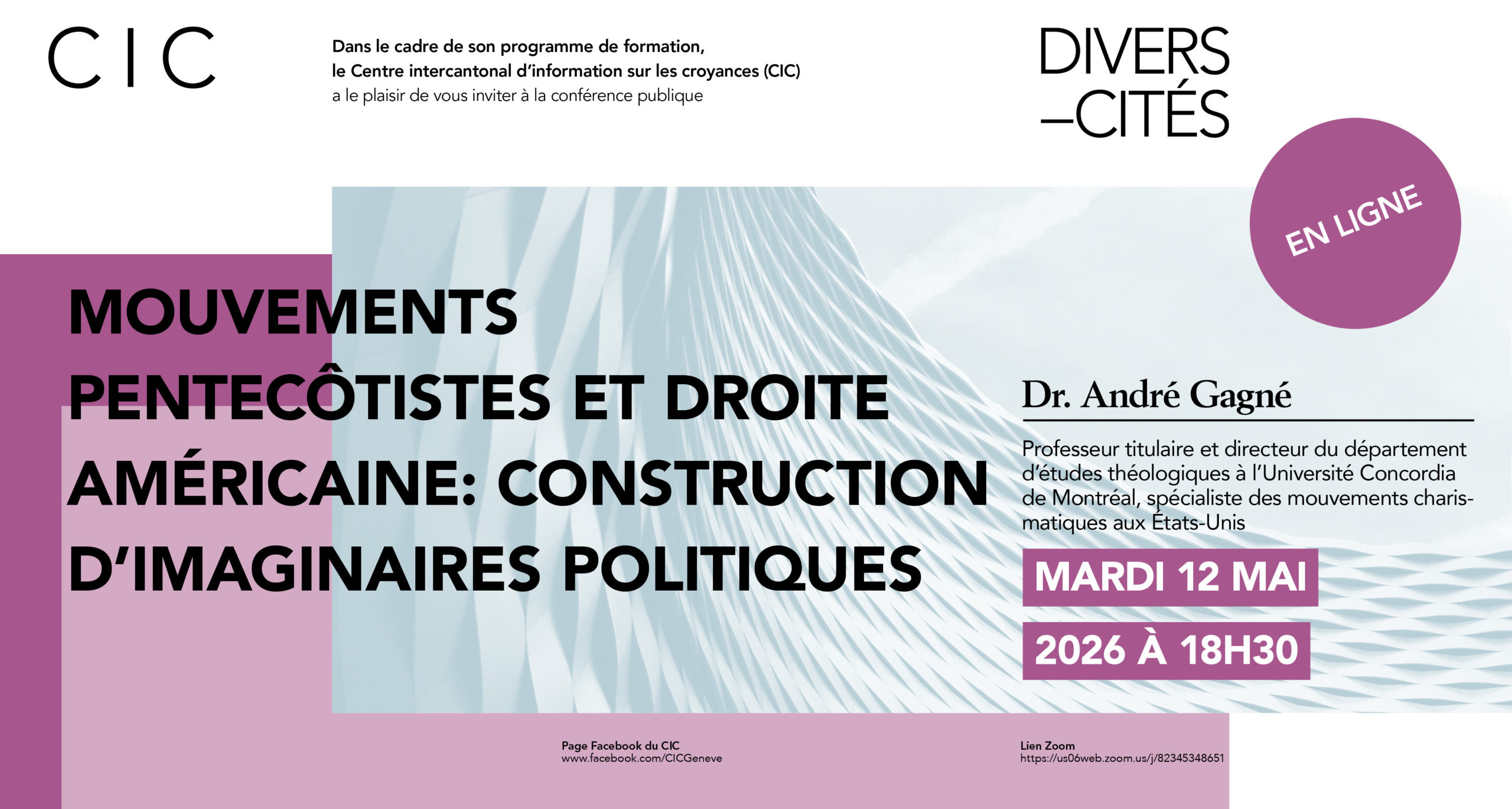 Centre intercantonal d'information sur les croyances (CIC), rue Jean-Jacques-de-Sellon 3, 1201 Genève ou en ligne 18.05.2026, 6:30 pm